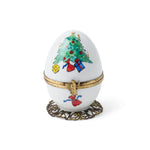 Handcrafted in Limoges, France by a family-owned company that has specialized in hand-decorated porcelain music boxes since 1941, our collectible makes a delightful gift. Designed in the shape of an egg and accented with Christmas motifs, our charming music box opens to reveal an enchanting holiday bear.