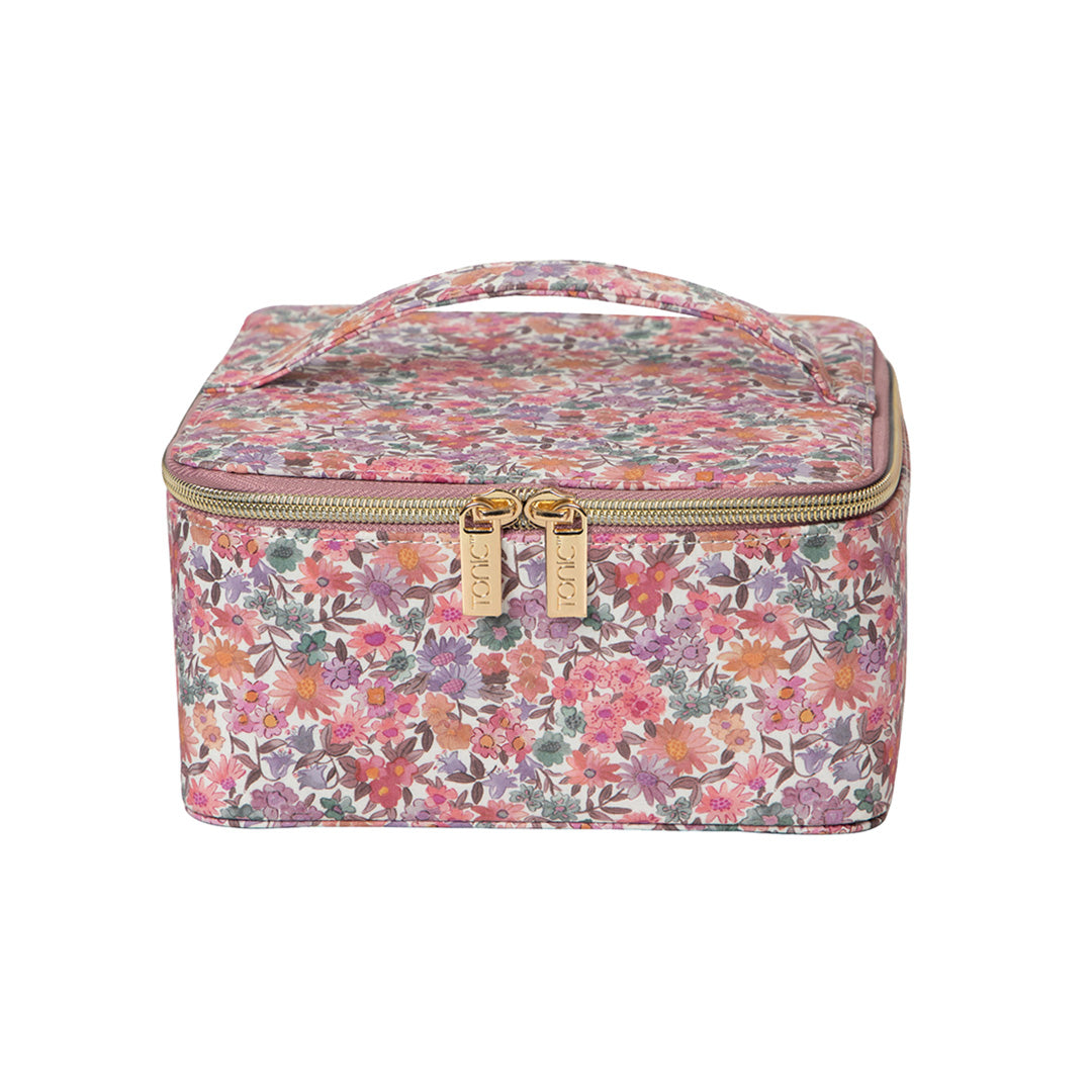 Perfectly sized for all your favorite jewelry pieces — or anything that needs a dedicated, organized space at home — this distinctive case offers a lifetime of enjoyment. Tonic's signature double zips open to reveal accordion pockets with clear windows as well as elasticated pockets, plus dedicated sections for earrings and rings, and additional necklace loops. The exterior features a Liberty cotton Tana Lawn™ in the Sandra Springs floral pattern; the interior is lined with soft pink suedette.