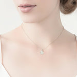 A sterling silver necklace featuring a disc pendant with a natural organic wavy surface, handset with four dazzling diamonds, meant to evoke the stars.
