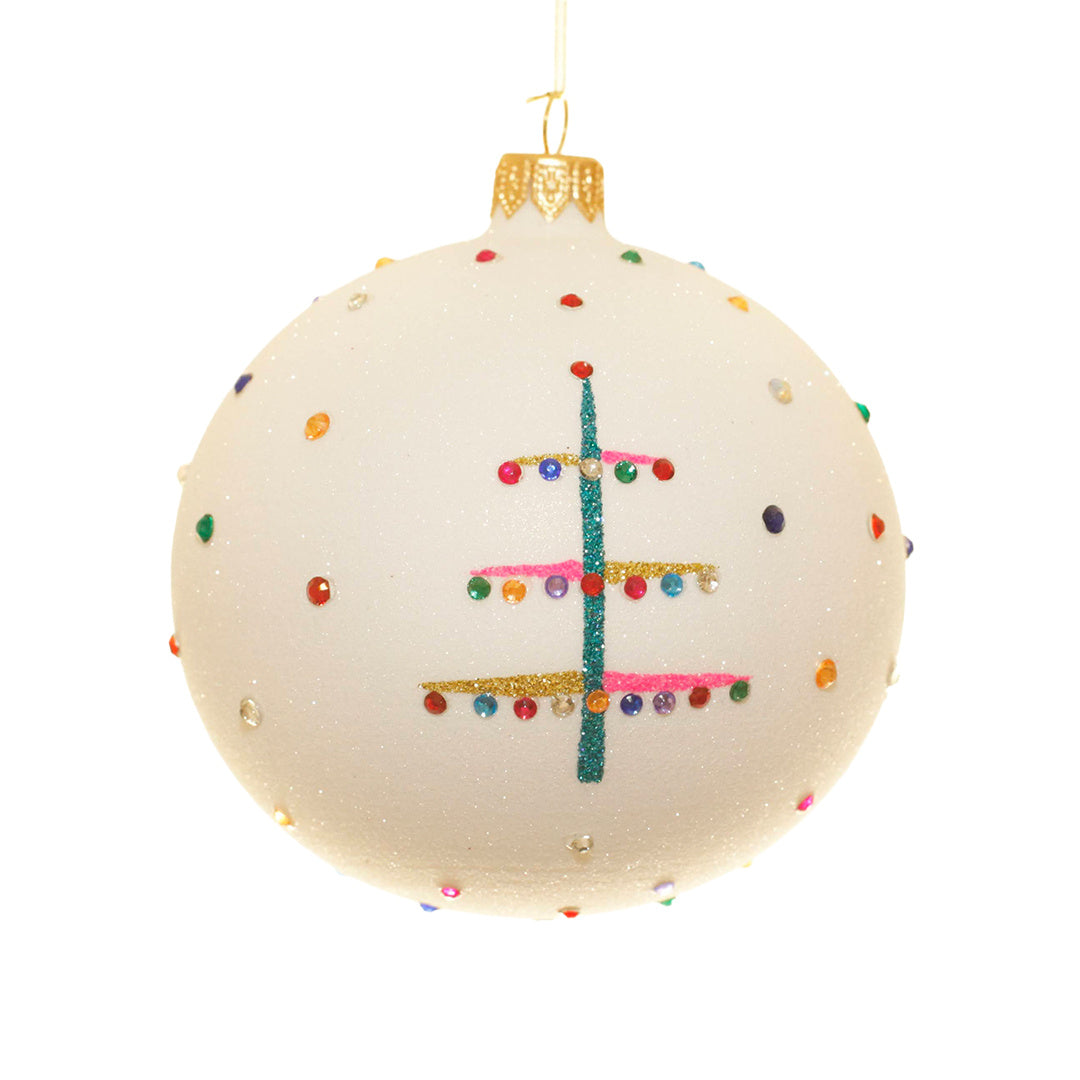 When Thomas Glenn couldn't find the ornaments he was looking for in Poland, he decided to design his own. As he started developing his own style, he began to create unusual colors and a unique process that made glitter part of the ornament's design instead of just being applied on top of it. This glass ornament was made entirely by hand in Poland — mouthblown into a mold and then handpainted and decorated with his signature extraordinary flair.