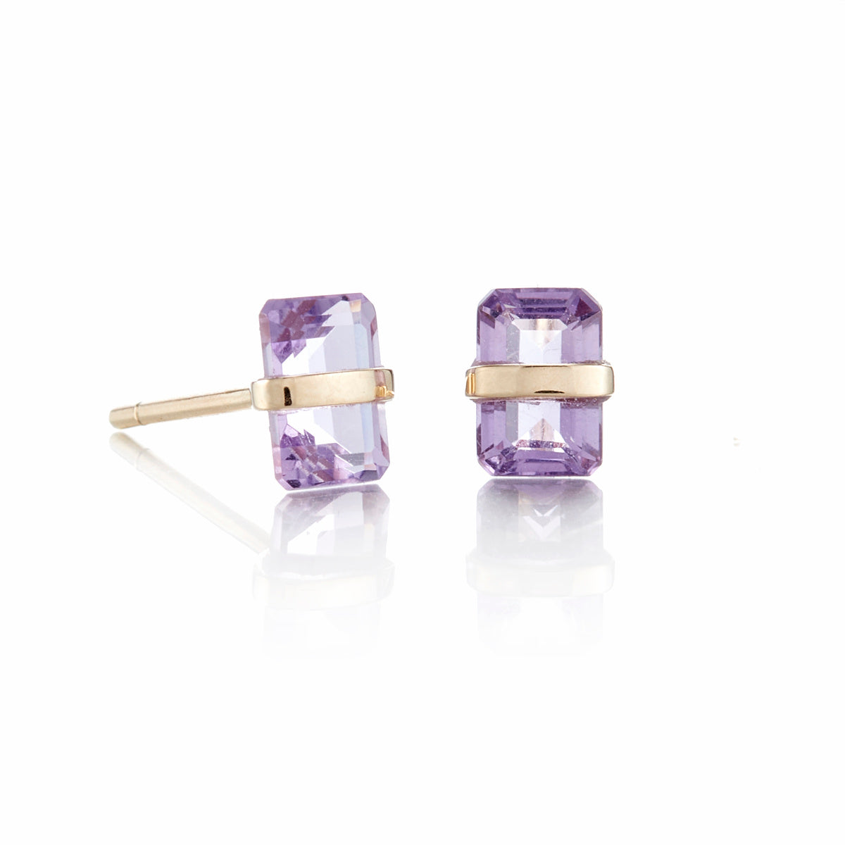The soft glow of faceted amethysts takes center stage in these studs, wrapped in a thin bezel of gold that accentuates their natural beauty. Perfect for adding just a hint of color and sophistication to your everyday look.