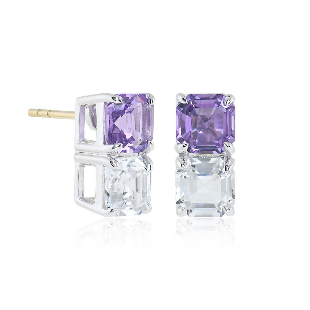 Clean lines and precise asscher cuts give this pair a composed elegance, while the duo of amethyst and white topaz adds just enough dimension.