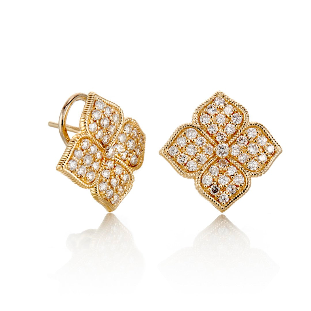 Our floral earrings glisten with a symphony of meticulously arranged diamonds, radiating a luxury that celebrates both nature's beauty and artful design. Since 1861, Gump's has been a destination for jewelry that is distinctive and timeless. Featuring only the finest materials, each piece is a statement of elegance.