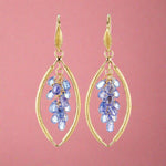 A waterfall of cascading tanzanite briolettes hangs within a gold open-shaped teardrop for maximum effect on these eye-catching earrings.