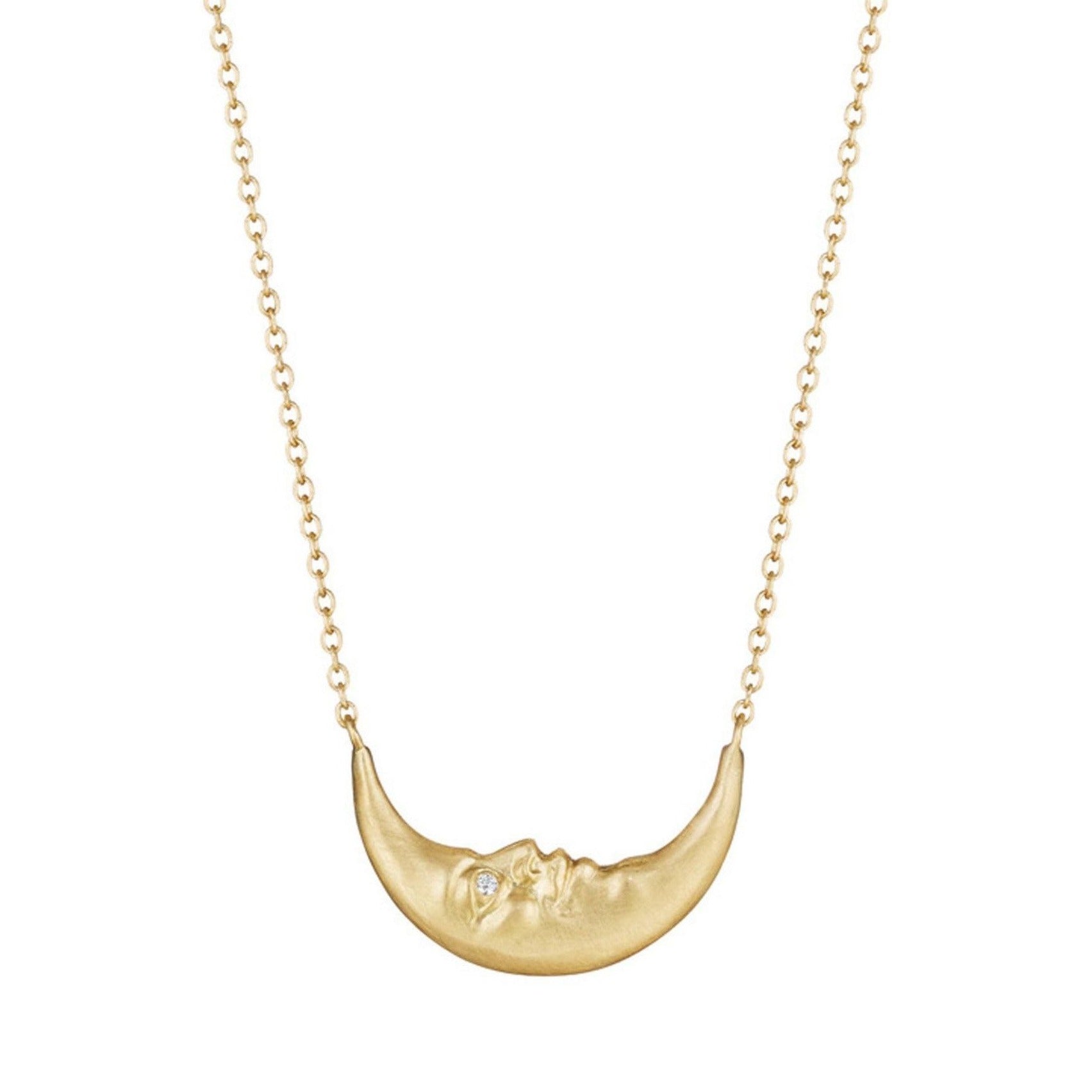 Anthony Lent Crescent Moonface Necklace with Diamond Eyes