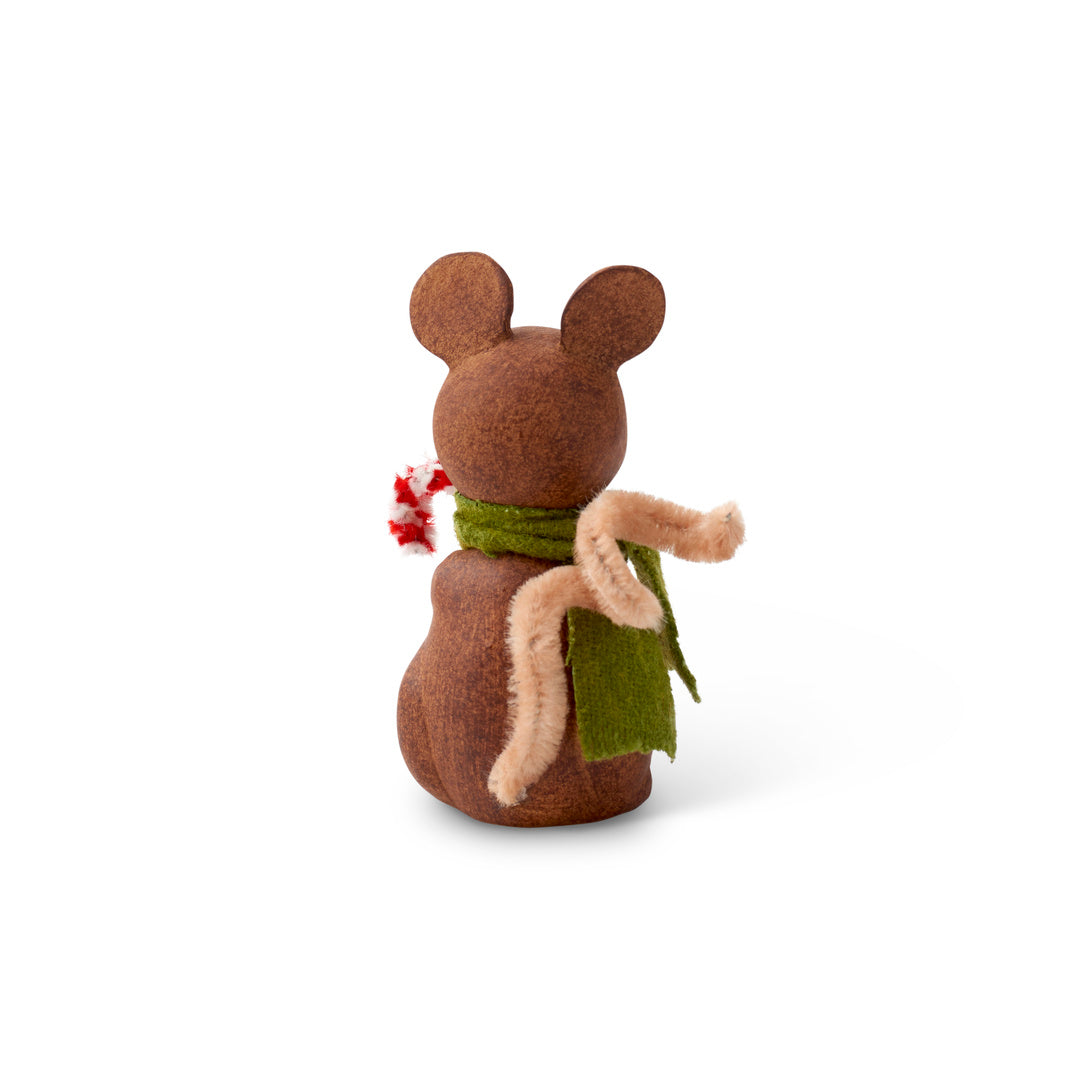 A tiny holiday helper clutching a swirl-striped treat, ready to scamper into the merriest of scenes. Perfect on a mantel or added near your dining table's centerpiece as a charming accent.