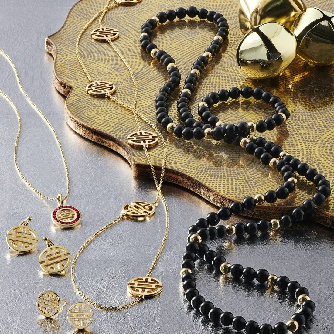 Black Jade & Gold Station Rope Necklace