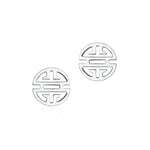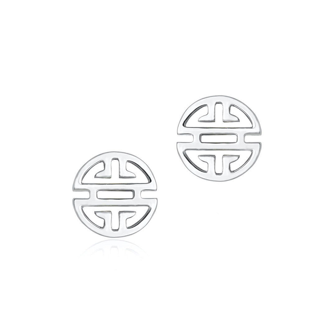These striking sterling silver earrings feature the shou, a symbol of long life and prosperity.