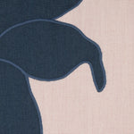 Sculptural lily silhouettes in deep indigo unfold against a pale blush ground, their hand-applied contours lending dimension and quiet drama.