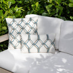 A lattice of hand-knotted ropes in tonal blues and neutrals creates a striking interplay of texture and form on this enchanting pillow. Handcrafted like a mariner's daydream, the breezy grid feels plucked from the deck of an artful seaside escape.
