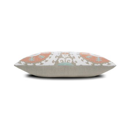 Inspired by classic Persian textiles, this pillow's medallion pattern is reimagined in soft sage, tan and ivory for a look that feels both storied and refreshingly light.