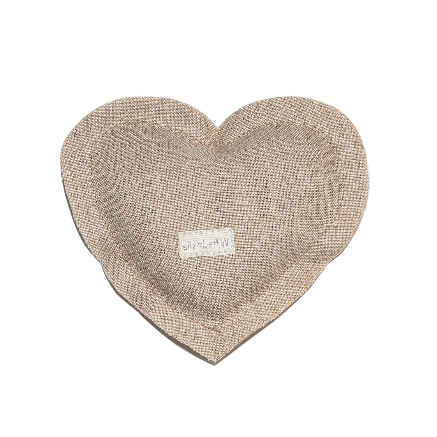 Made with love, these pretty heart sachets are filled with lavender. Tuck into a drawer and enjoy the herbal aroma. 100% linen. 5"L x 5 1/2"W.