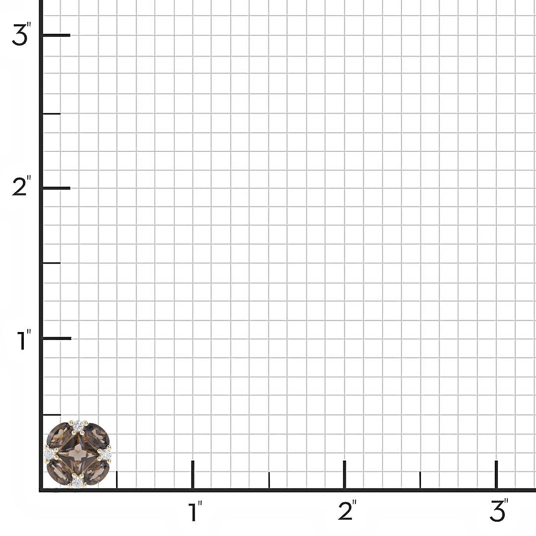 A striking composition of faceted smokey quartz and brilliant diamonds forms this symmetrical stud, blending geometric finesse with subtle sparkle.