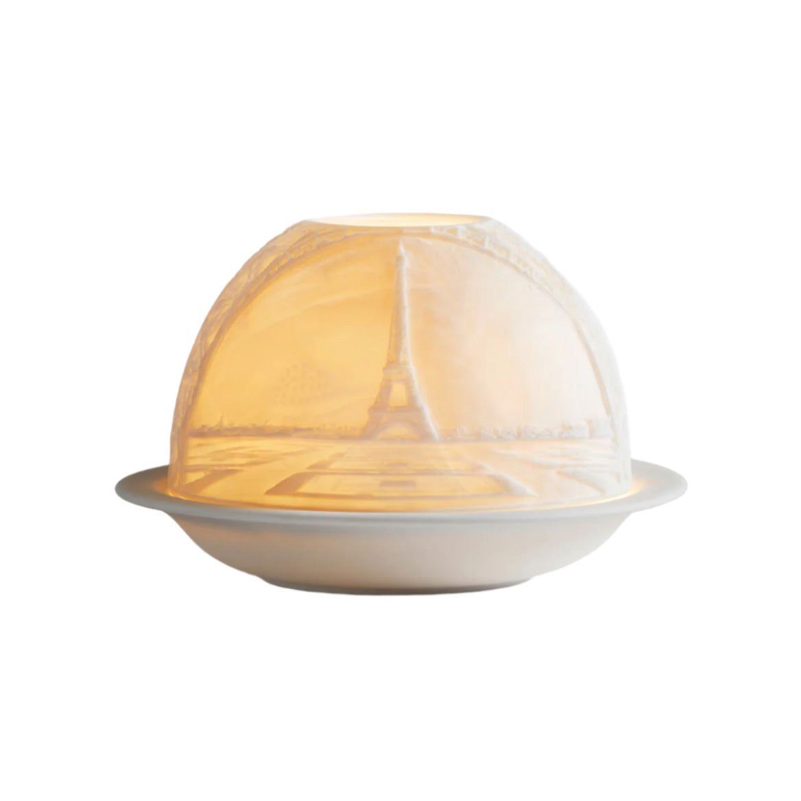 Bernardaud artisans use the same technique of hand-sculpting fine, bisque porcelain first demonstrated in the 17th century. The glow of a tealight candle (not included) shines through the raised and carved surface to contrast light against shadow, revealing a richly detailed design. Founded in Limoges, France in 1863, Bernardaud is steeped in the great French porcelain tradition. Highly regarded for their ability to create the perfect blend of classic and modern, the family-owned company upholds the philosophy of founders: preservation of technical expertise, the tradition of creativity and a passion for innovation. 3" diam. x 3"H.