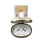 Limoges boxes come in an endless array of shapes and designs — from the witty and fanciful to the elegant and refined. Made from pure white porcelain that’s produced only in Limoges, France, each cache is crafted and painted by hand, making it one of a kind. Open the box to reveal a "Arc de Triomphe" and "Paris, France" handpainted inside.