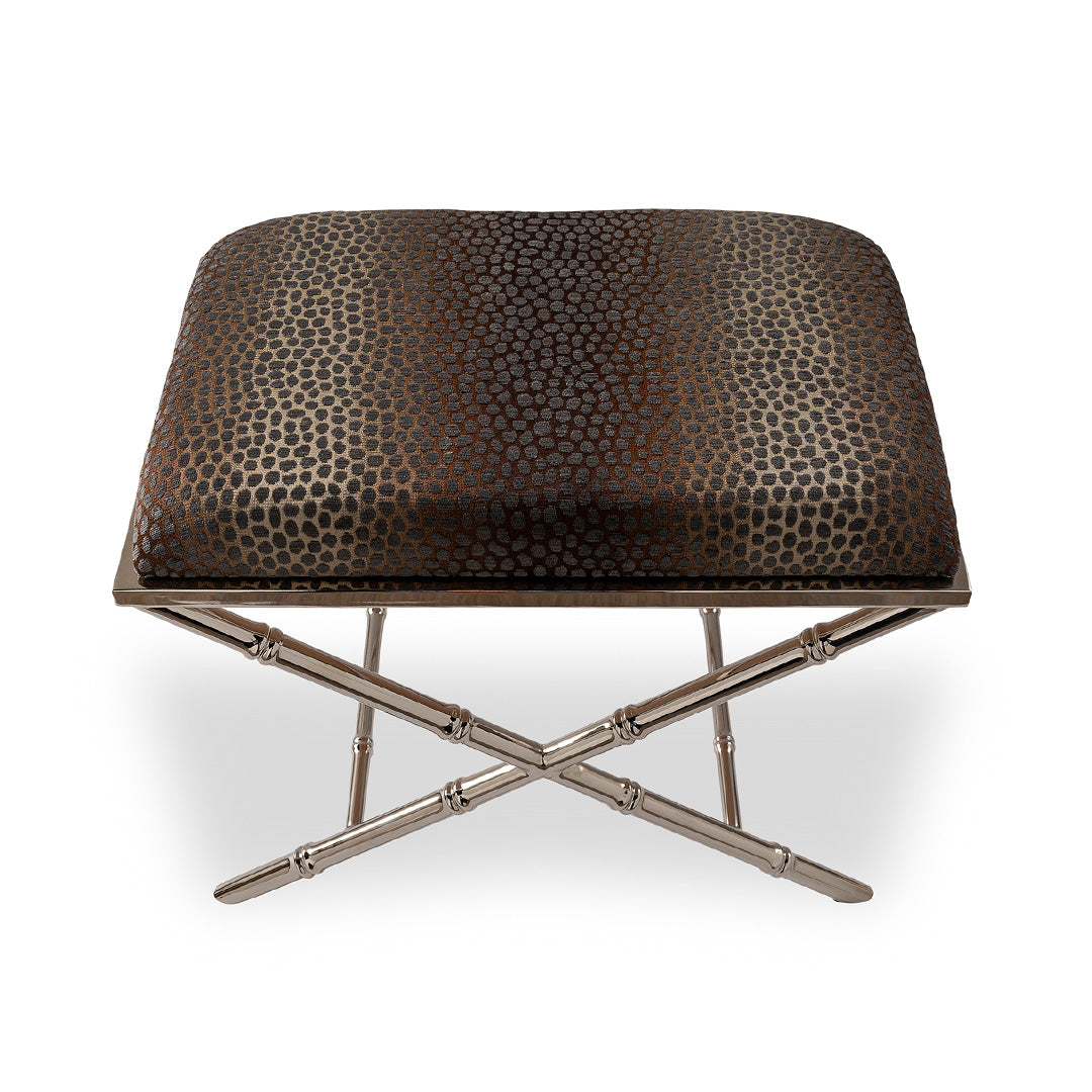 A polished nickel finish, bamboo accents and an exotic animal print cushion come together to create this striking bench, merging modern materials with subtle texture for a refined and timeless statement piece.