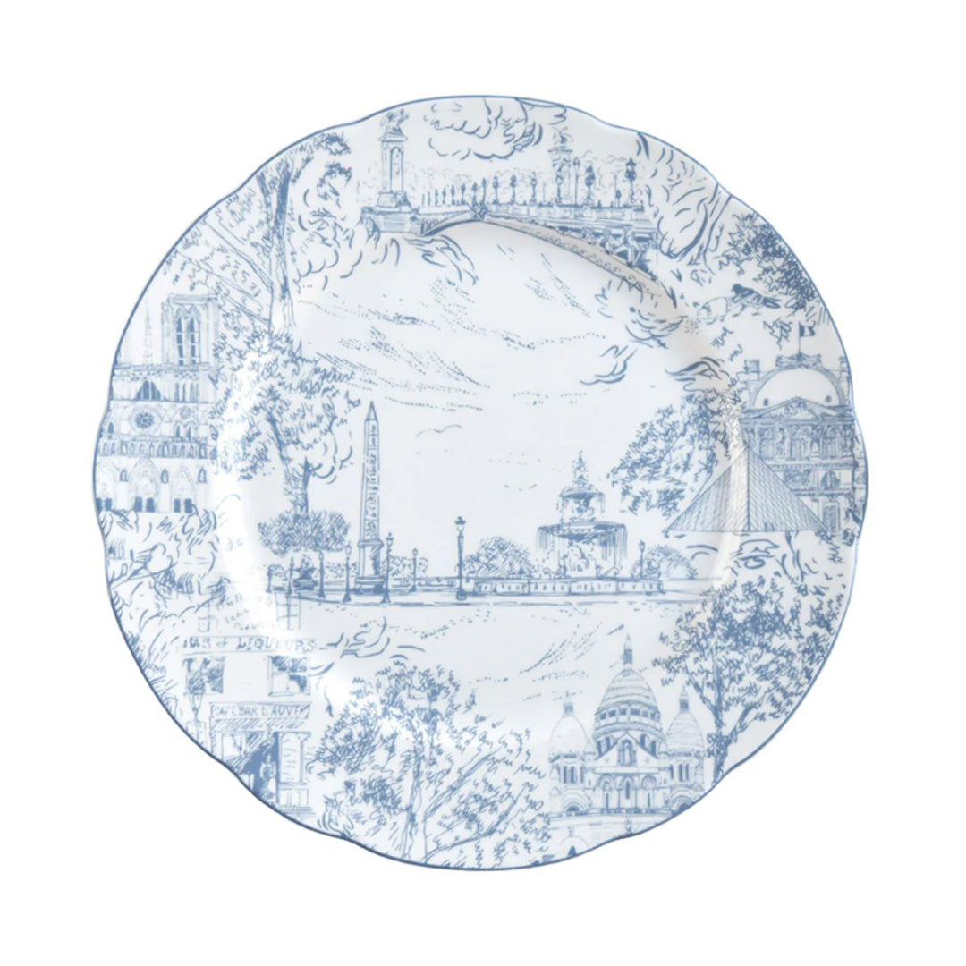 A lasting tribute to Paris that captures the spirit of the City of Light, Bernardaud's extraordinary collection features elegantly positioned iconic monuments — such as Notre-Dame, Montmartre, the Arc de Triomphe, the Eiffel tower, the Opera, the Louvre — mixed with scenes of the city's ubiquitous cafés and gardens. The colors of Tout Paris are those traditionally used in the toile de Jouy, a famous canvas created in the 18th century in Jouy-en-Josas (near Paris). Handcrafted of Limoges porcelain for a lifetime of enjoyment, the collection is sure to bring back memories of special moments spent in Paris or inspire dreams of future journeys to this magical city.