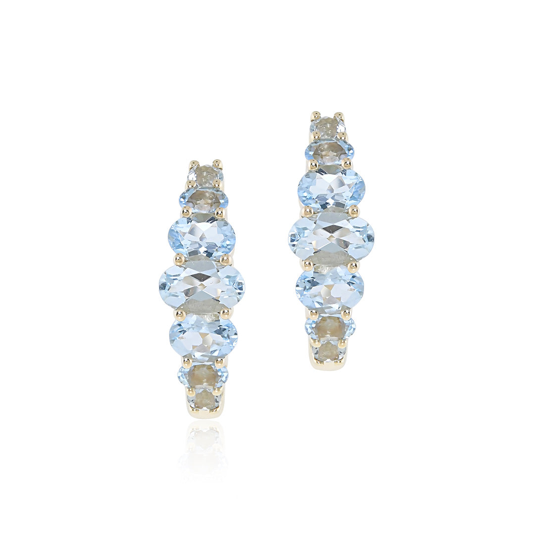 Our hoop earrings feature graduated aquamarine stones set in gold, creating a cascade of soothing blues that sparkles when it catches the light. Finished with a gold bamboo clasp.