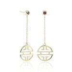 A symbol of long life and prosperity, a Chinese shou hanging from ruby studs sways with every movement of our exclusive earrings.