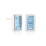A reinterpretation of the classic channel-set gemstone ring, our earrings feature three Swiss Blue topaz stones set in sterling silver.
