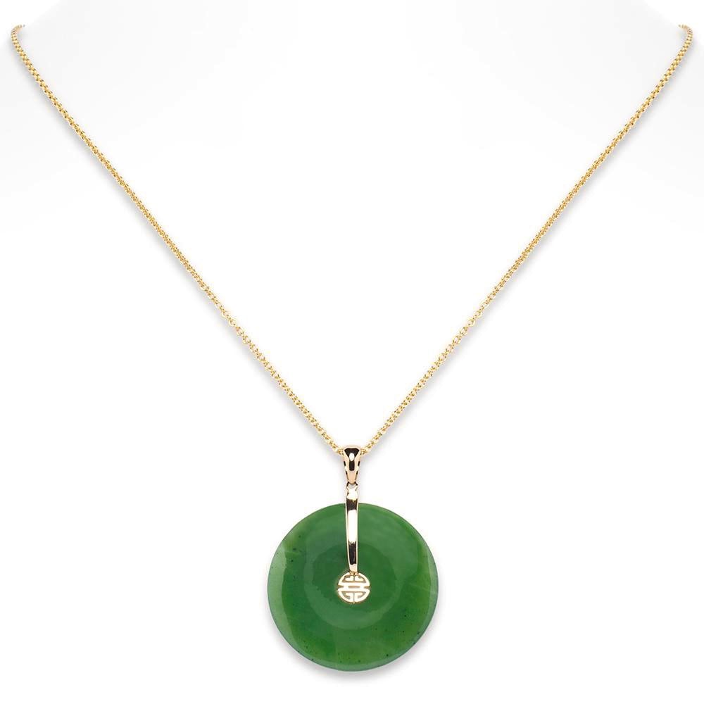 Green Nephrite Jade Pi & Diamond Pendant Necklace