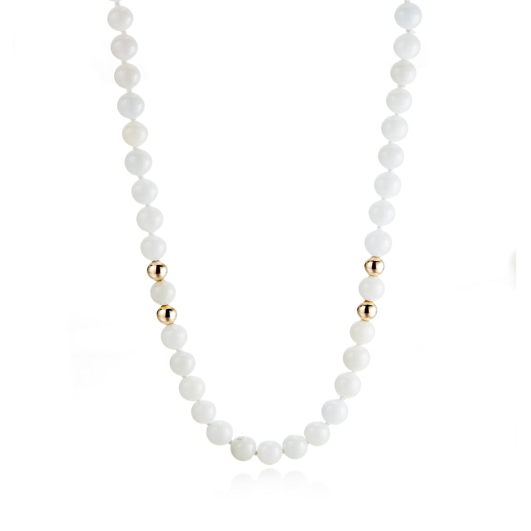 5mm Green Jade Bead & White Pearl Rope Necklace