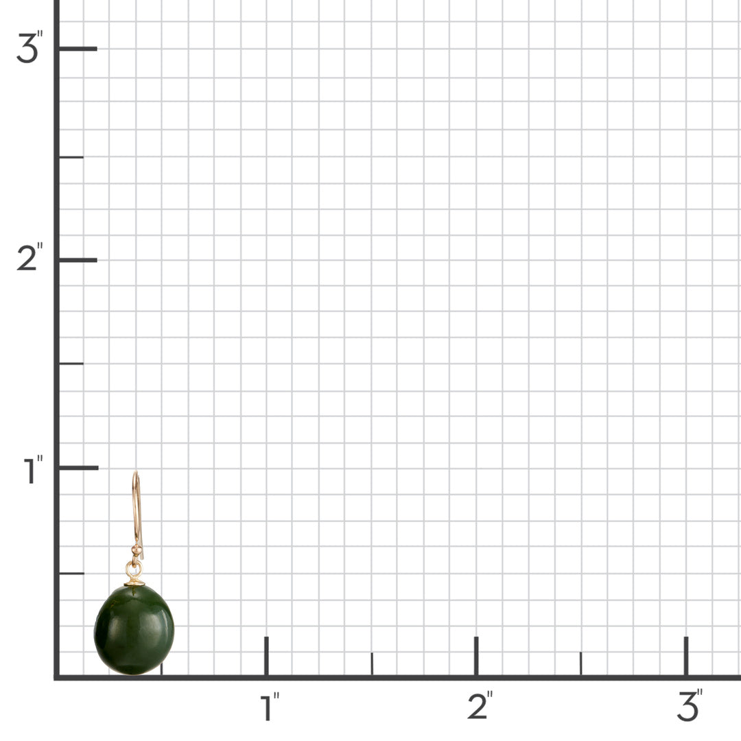 Deep green jade ovals are suspended from minimalist gold hooks, offering a grounded sense of form and tradition.
