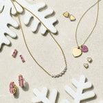 We offer complimentary gift packaging — a signature gold-lidded gift box with hand-tied satin ribbon — on all jewelry orders.
