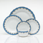 Made of white porcelain and handpainted by master artisans in Hungary, this elegant plate is bordered in blue and 24-karat yellow gold. Herend’s porcelain creations feature a signature pattern that dates back to 1858, when a fish-scale decoration inspired a craftsman to create a similar design imitating feathers. 6" diam.