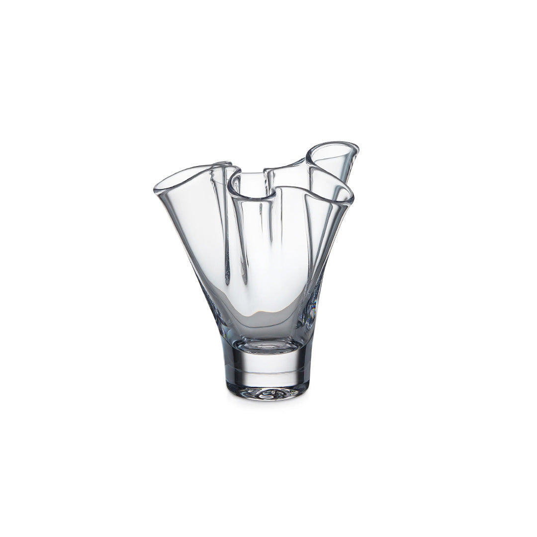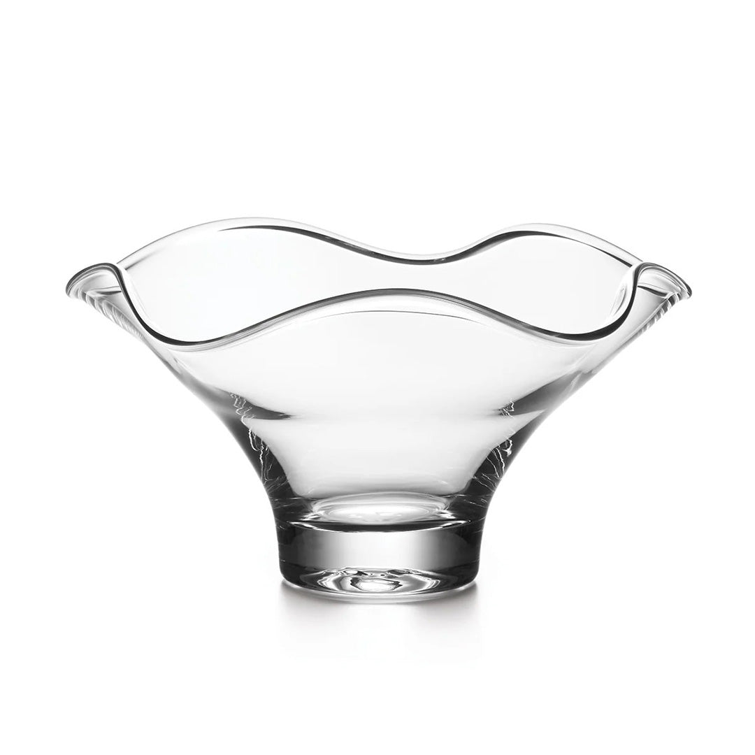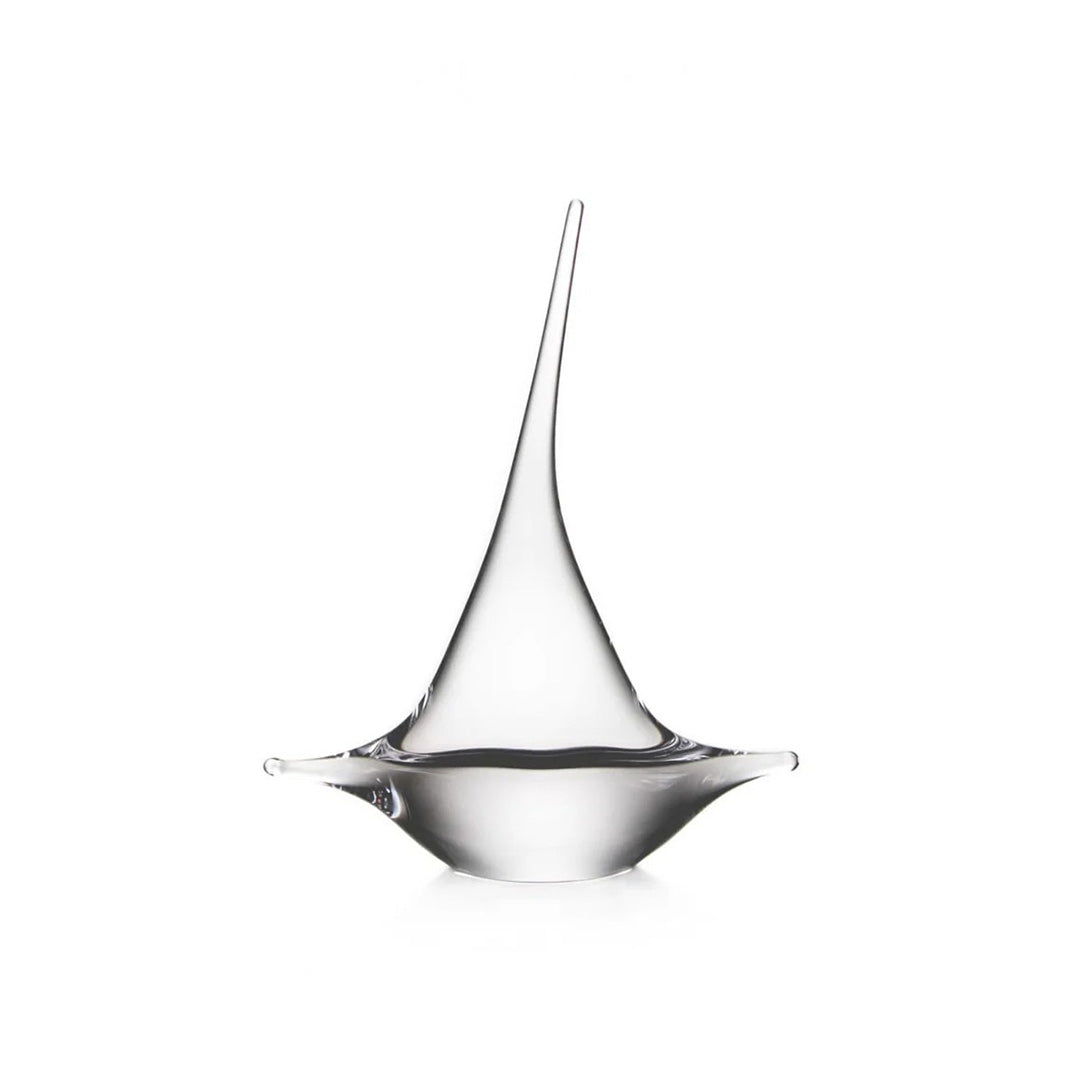 Create your own winter wonderland, no mittens required. This jolly happy soul is handcrafted in brilliant clear glass to add whimsy to any holiday display.