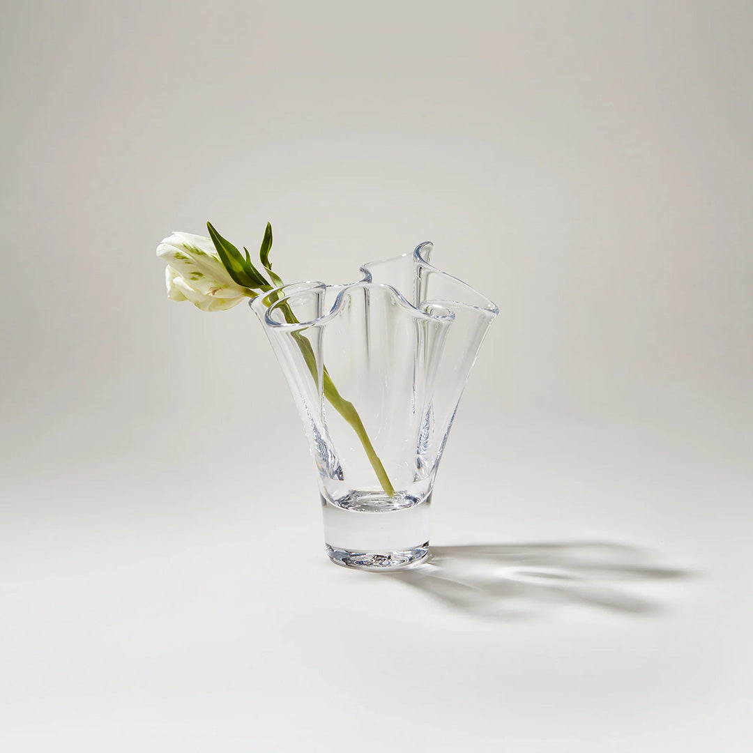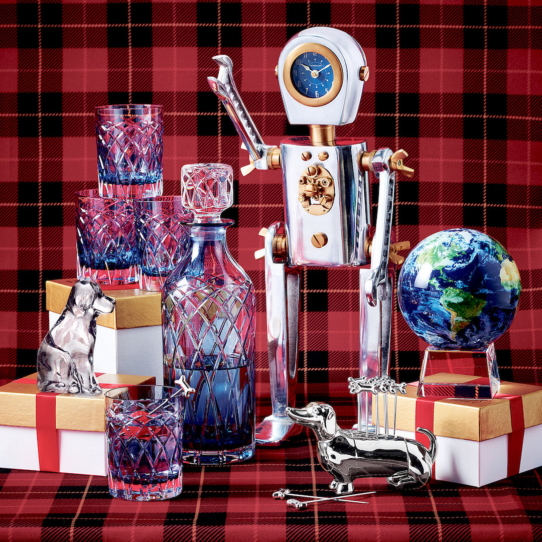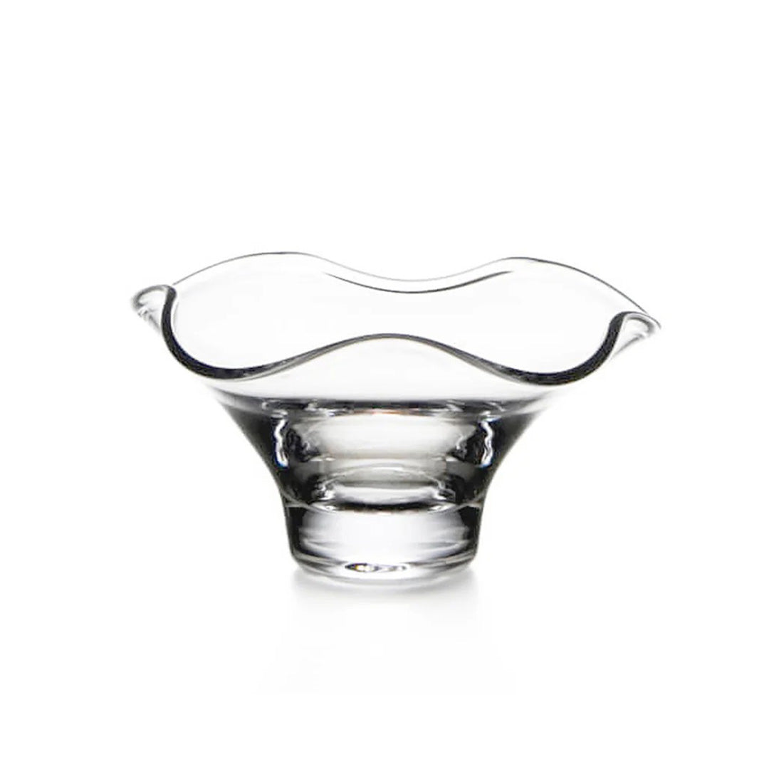 Create your own winter wonderland, no mittens required. This jolly happy soul is handcrafted in brilliant clear glass to add whimsy to any holiday display.