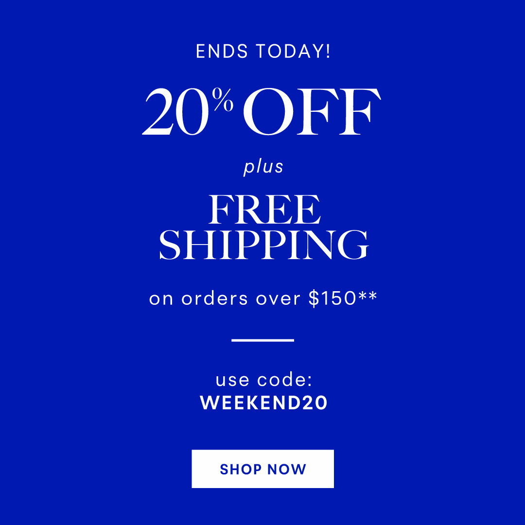 USE CODE WEEKEND20 FOR 20% OFF* & FREE SHIPPING ON ORDERS OVER $150**