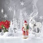 Our holiday deer hails from the hills of Northern Bavaria, where the artisans of Ino Schaller have made Christmas crafts for over a century. Covered in soft white flocking, the sparkling buck sports stunning antlers, a faux fur collar and a dusting of glitter.