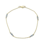 Our cable link bracelet captivates with its minimalist design, featuring a trio of blue sapphire stations that lend a touch of refined glamour to any outfit.