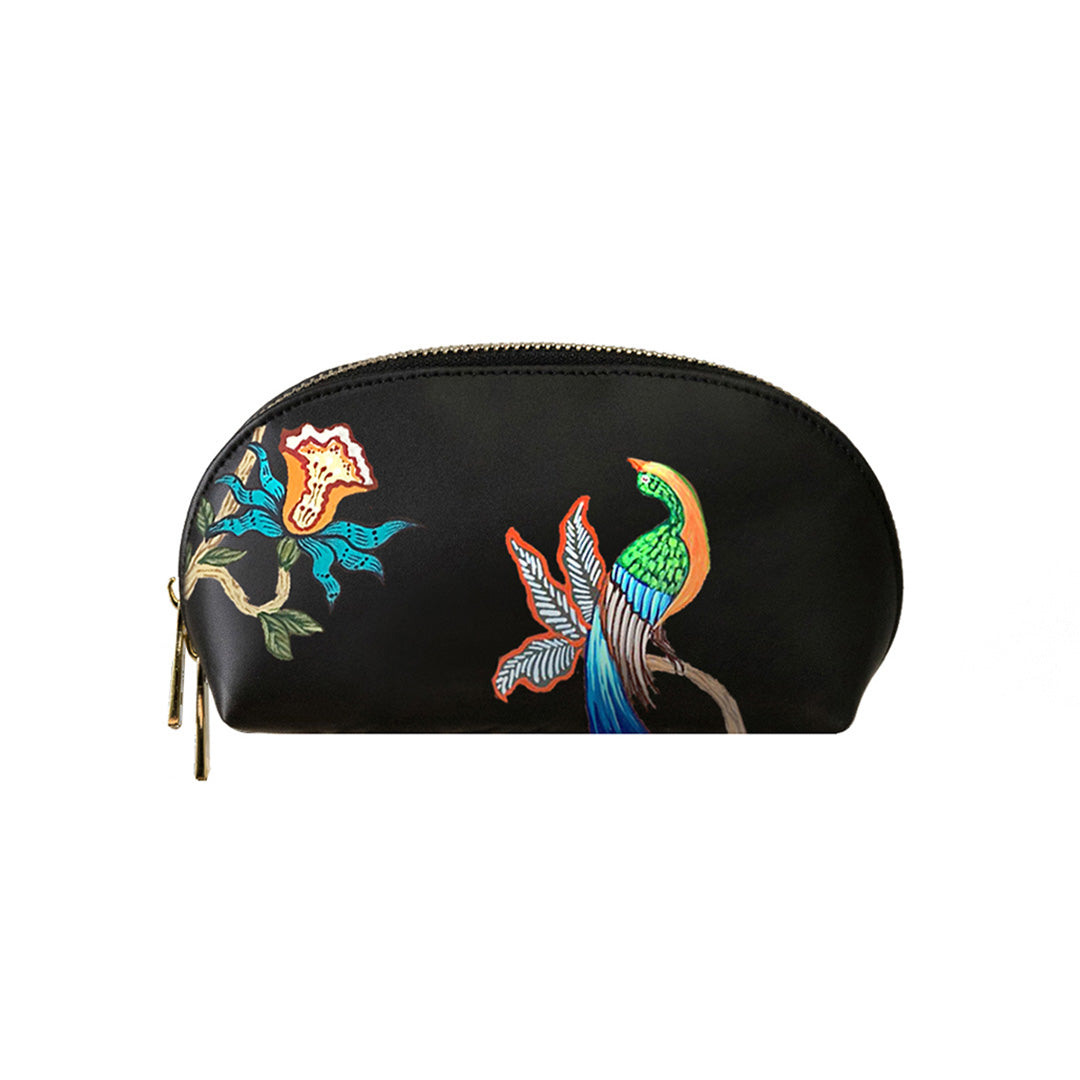 As striking perched on a vanity as it is practical for on-the-go essentials,this handpainted makeup bag features classic bird and floral motifs reimagined with an artful twist.