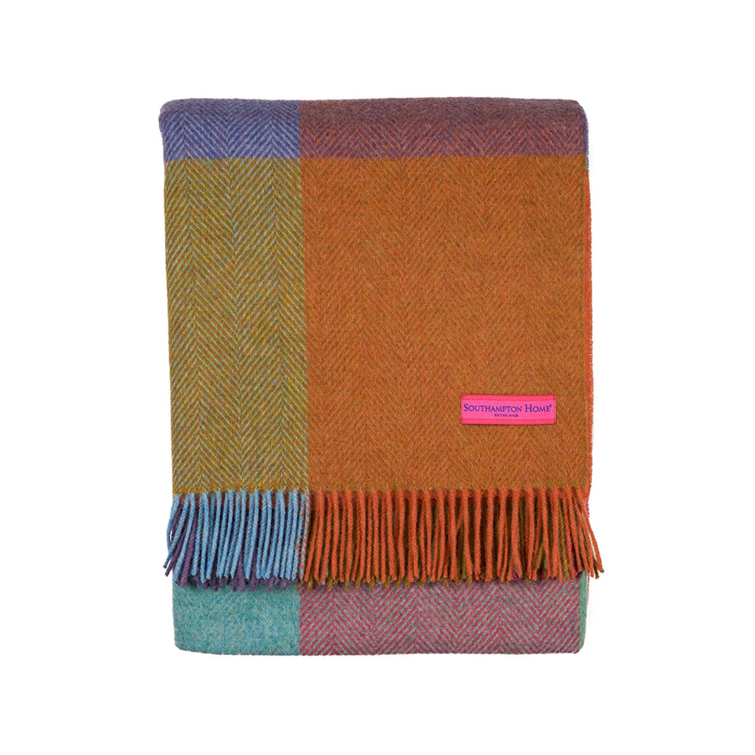 Soft and supple, this cozy throw is the one you'll reach for time and time again. It's woven in the British Isles of pure merino wool, making it durable enough for an impromptu lunch in the park and warm enough for luxuriating at home with a good book. The double-sided contrasting pattern lends the perfect pop of color to any room.