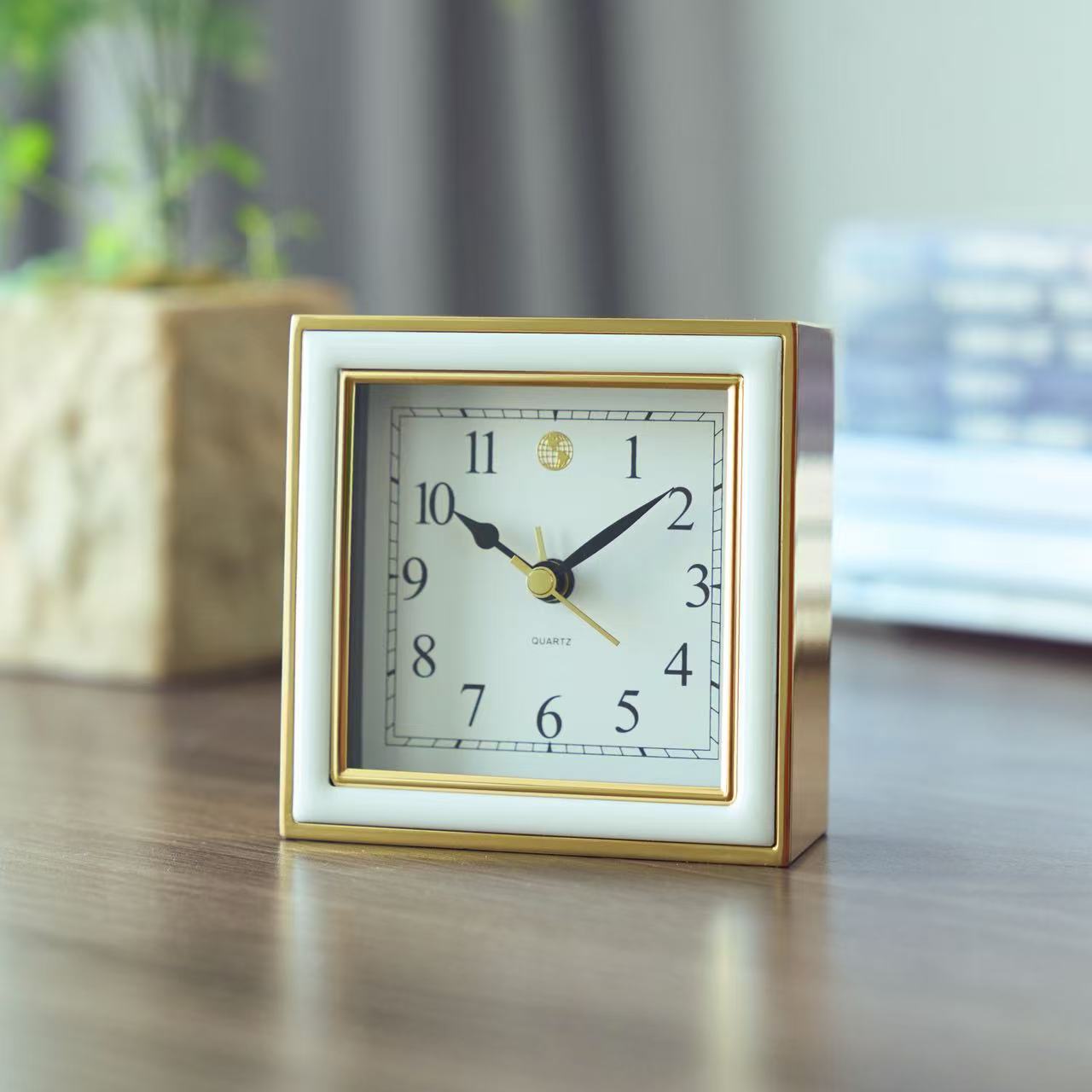 Small in size but big on charm, this gold-tone clock, framed with ivory enamel, keeps perfect time with quiet quartz movement. A thoughtful gift for anyone who appreciates the little details that keep life beautifully on schedule.
