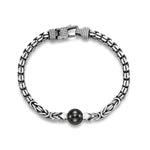A single Tahitian pearl anchors this bold men’s bracelet, lending an unexpected element of polish to its intricately woven sterling silver chain. The design merges traditional craftsmanship with a modern edge, resulting in a piece that feels both rugged and refined.