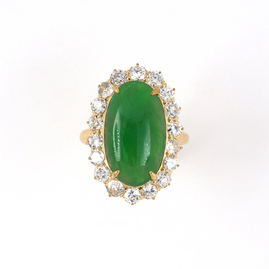Victorian Jadeite Diamond Cluster Dinner Ring