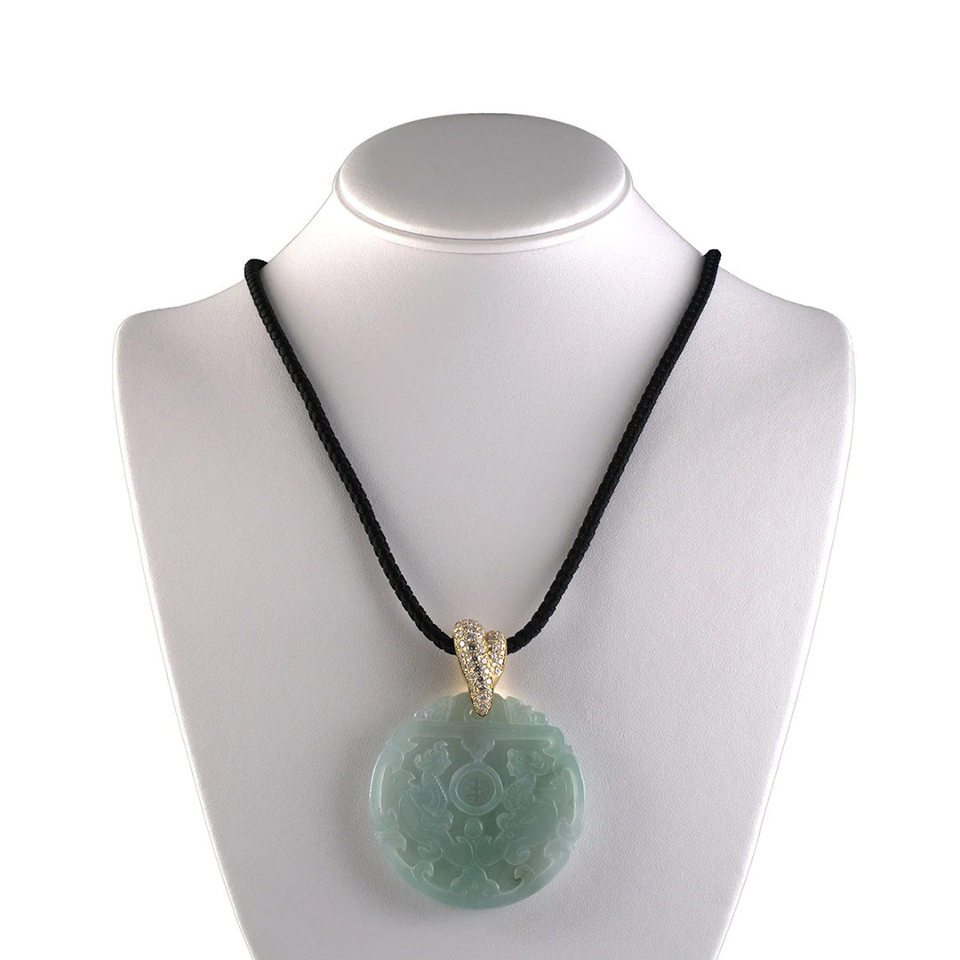 Jadeite Dragon & Phoenix Disc Pendant Necklace