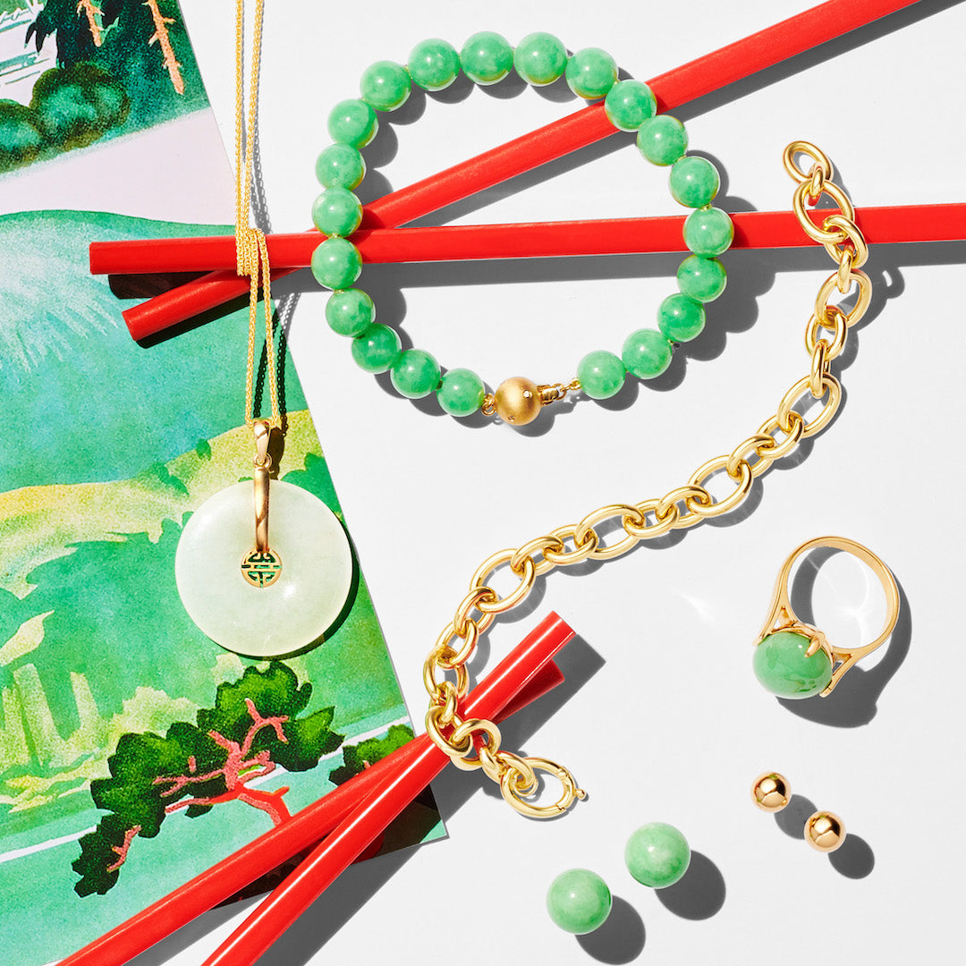 This striking pendant is set with a white jade pi with gold shou center. The versatile piece lends an air of modern sophistication to any outfit. Since 1861, Gump's has been a destination for jewelry that is distinctive and timeless. Once considered more precious than gold and treasured for thousands of years, jade has been more highly prized in Asia than any other gemstone. It represents harmony, balance and protection, and is thought to bring good luck to the wearer.