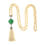 Suspended like a talisman, the hand-carved jadeite dragon ball anchors this Edwardian necklace with a sculptural gravity. Twisted strands of luminous seed pearls culminate in a platinum-tipped tassel, a delicate counterbalance to the bold centerpiece — blending East Asian artistry with early 20th-century European refinement. Gump’s is forever treasure hunting for the best of everything and our collection of estate jewelry — featuring rare antique pieces — is no exception. Distinguished in provenance, each item is one of a kind, reflecting its distinctive gemstones, materials and craftsmanship.