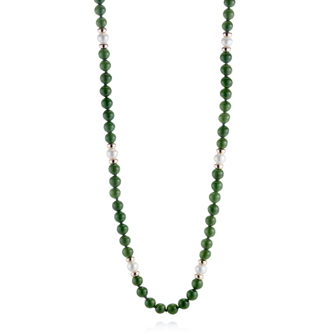 5mm Green Nephrite Jade & Pearl Station Rope Necklace