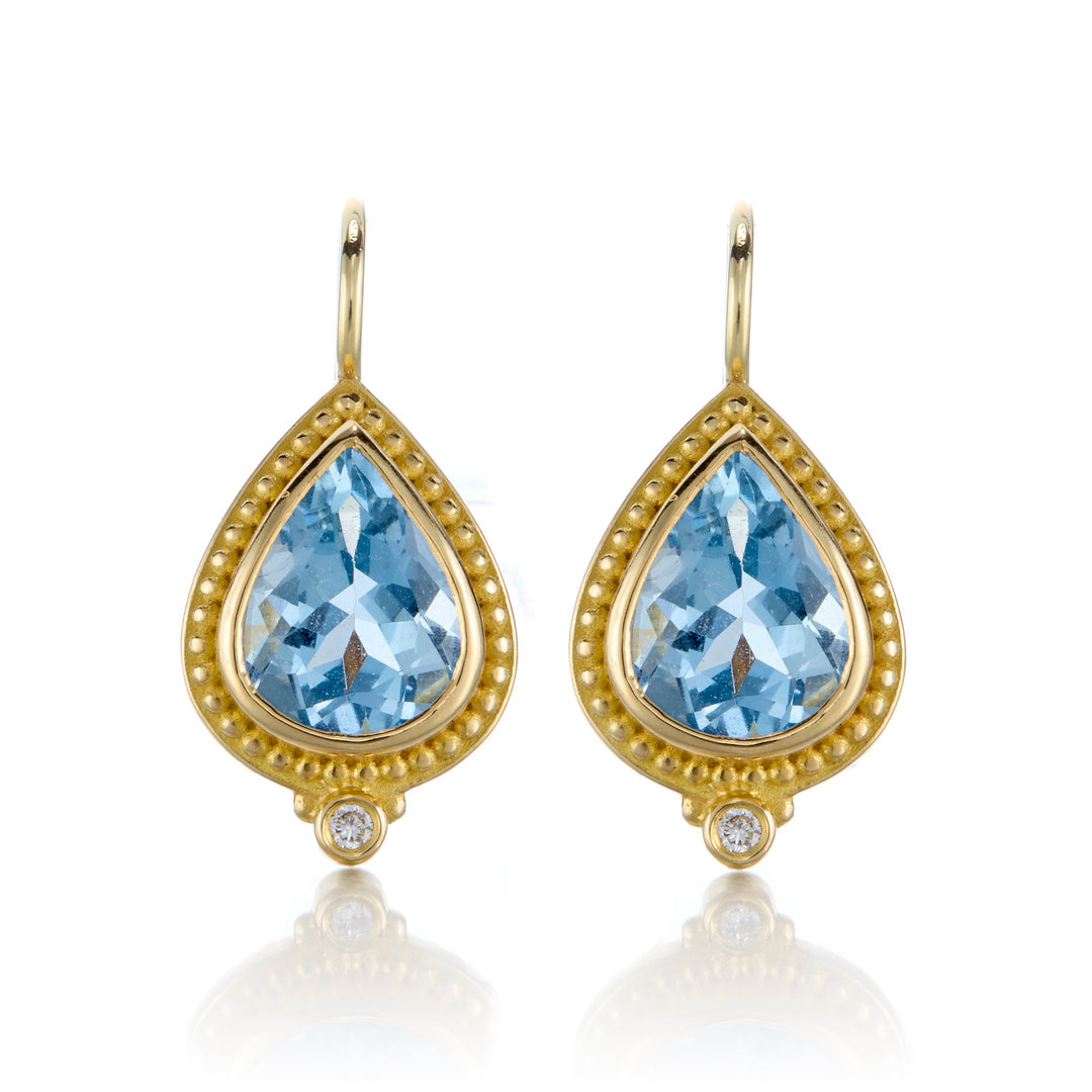 Aquamarine & Diamond Drop Granulated Earrings