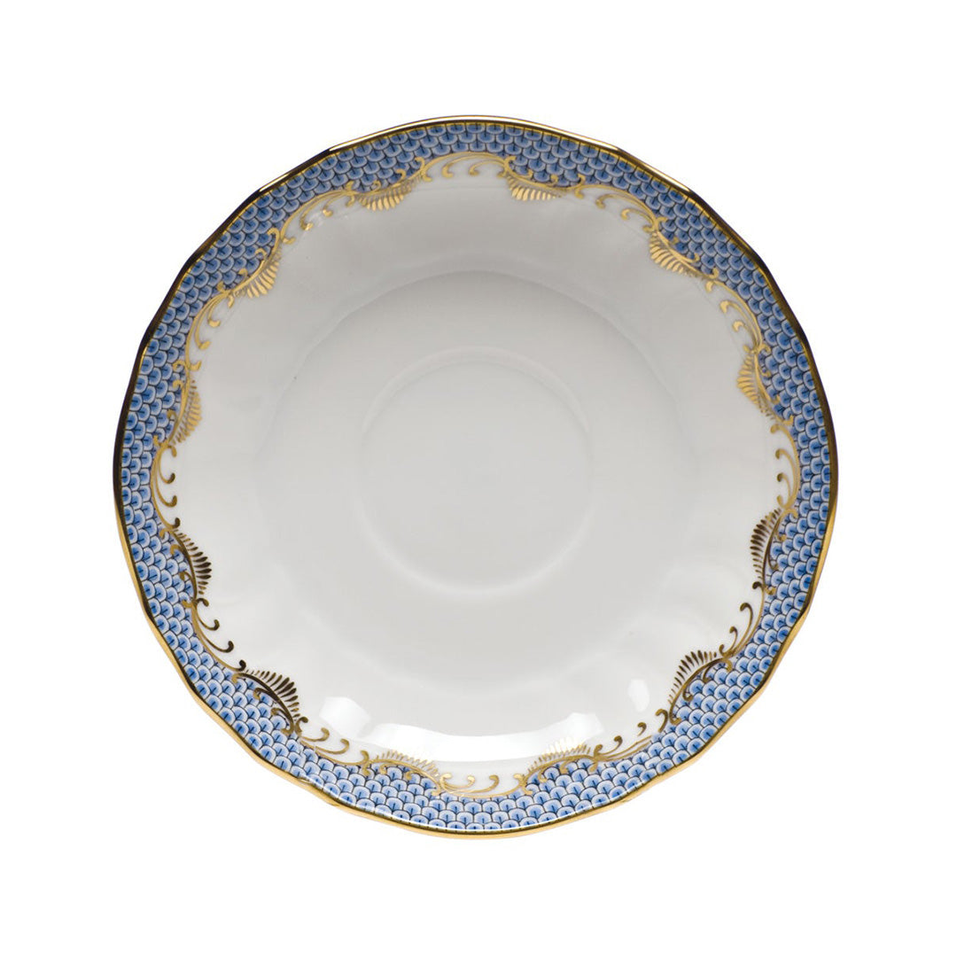 Herend Fish Scale Canton Tea Saucer, Light Blue