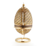 A dazzling blend of artistry and surprise, this mouthblown glass jeweled egg opens to reveal a finely handpainted leopard perched within. The box winds to play Beethoven’s 'Für Elise.' Hang as an ornament (ribbon not included) or display on the brass stand (included).