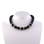 From 1991, this striking necklace features polished onyx beads accented by ribbed gold rondels and a diamond-set clasp. Its bold symmetry and rich contrast reflect the confident elegance of late 20th-century design.