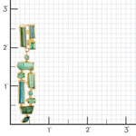A mosaic of green tourmalines in varied cuts and tones cascades down these earrings, each stone set within textured yellow gold. The linear arrangement creates a dynamic balance of structure and movement, highlighting the gem’s natural depth.