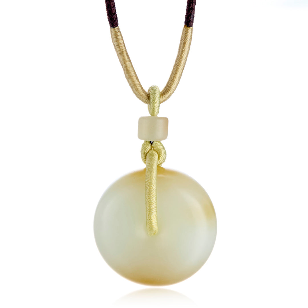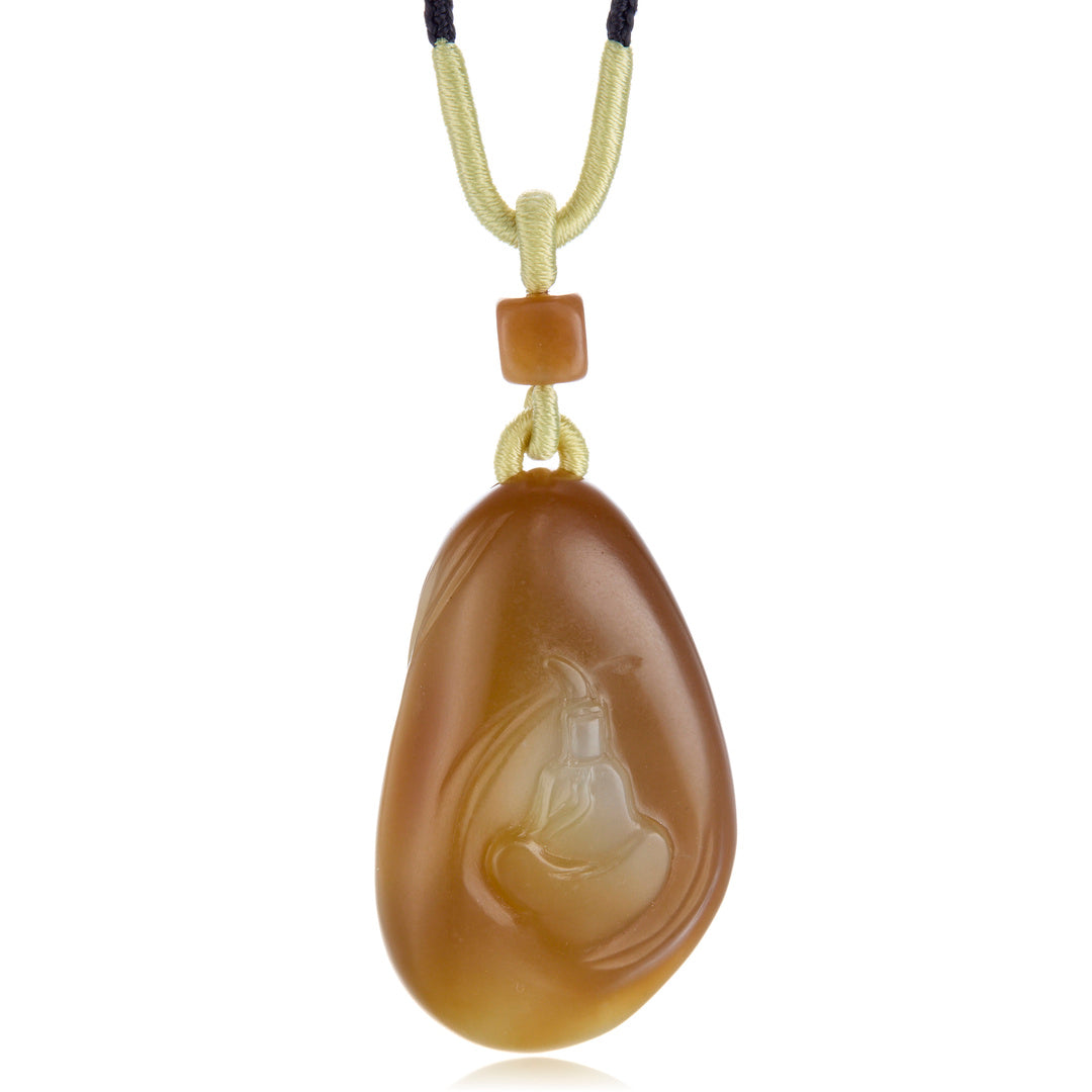 White & Honey Nephrite Jade Carved Pendant Necklace