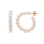Classic hoops, reimagined. These sculptural stunners showcase a full circle of luminous white freshwater pearls — an artful take on the silhouette no jewelry lover should ever be without.